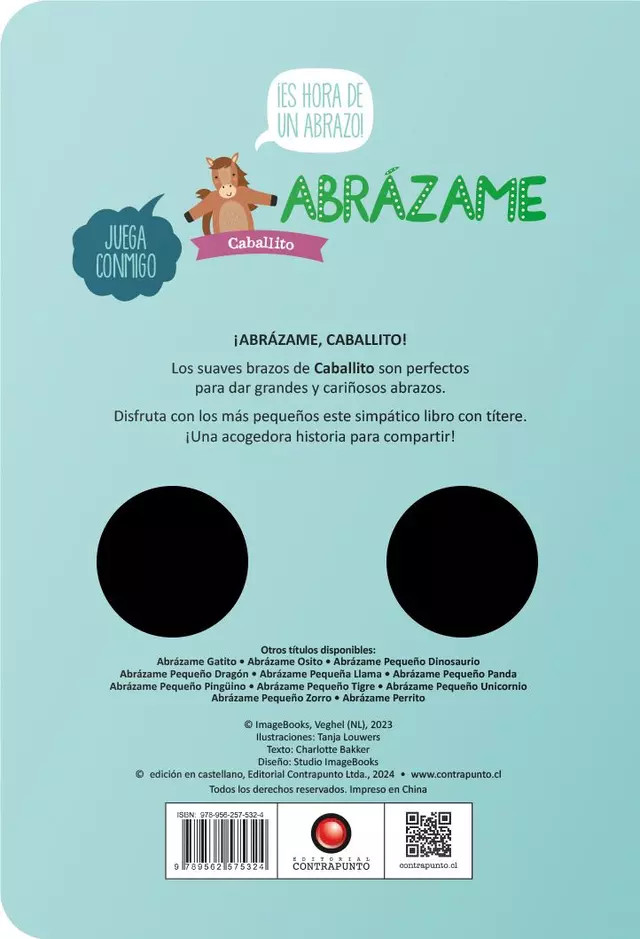 Abrázame. Caballito no es solo un libro: es una experiencia sensorial y afectiva. Con sus suaves brazos de peluche y su diseño en todo cartón resistente, este libro invita al juego, al apego y a la lectura compartida desde los primeros meses de vida. Perfecto para desarrollar el vínculo emocional, la motricidad fina y el amor por los cuentos.