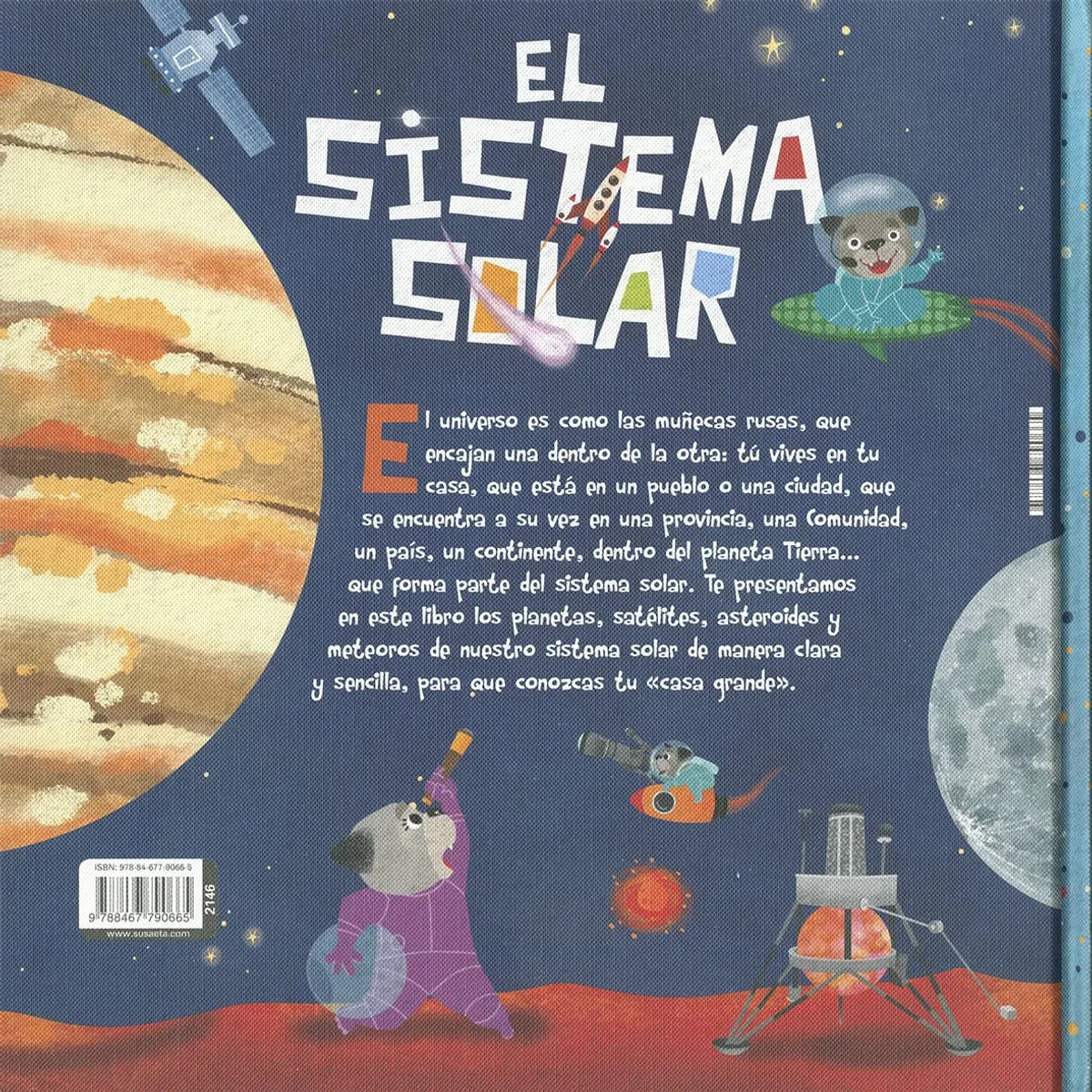 El universo es como las muñecas rusas, que encajan una dentro de la otra: tú vives en tu casa, que está en un pueblo o una ciudad, que se encuentra a su vez en una provincia, una Comunidad, un país, un continente, dentro del planeta Tierra... que forma parte del sistema solar. Te presentamos en este libro los planetas, satélites, asteroides y meteoros de nuestro sistema solar de manera clara y sencilla, para que conozcas tu "casa grande".